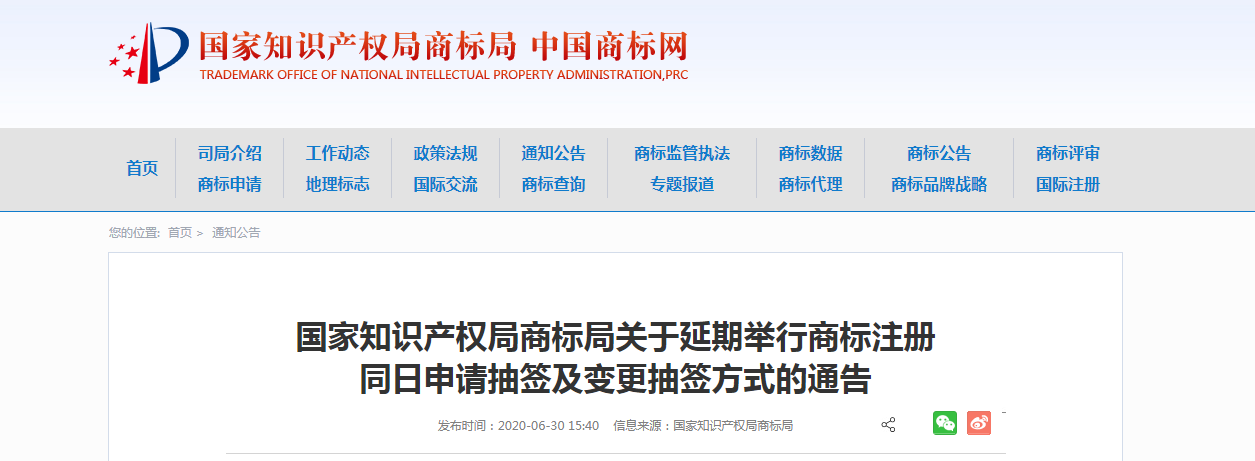 受新冠肺炎疫情影响,国家知识产权局商标局决定延期举行商标注册同日申请抽签,并将抽签方式由线下抽签变更为线上抽签,具体时间安排如下: