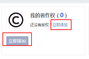 添加著作权汇总(第二步):点击版权管理或从导航栏列表进入著作权汇总管理列表页后,点击添加版权即可