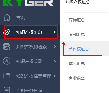 查看著作权汇总数据(第一步):在著作权汇总管理列表页面检索出需要查看的数据,例如:版权种类等,然后点击搜索